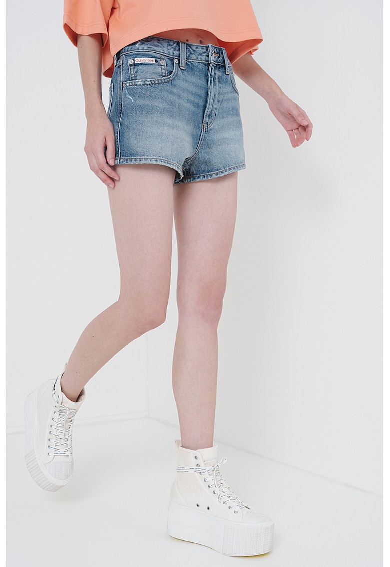 Caracteristici Culoare: albastru melange Imprimeu: uni Croiala: regular fit Material: denim Talie: medie Lungime: scurti Buzunare: 5 buzunare Compozitie Exterior: 100% bumbac Info model Modelul poarta un produs de marimea 27. Marimi model: 177 cm inaltime