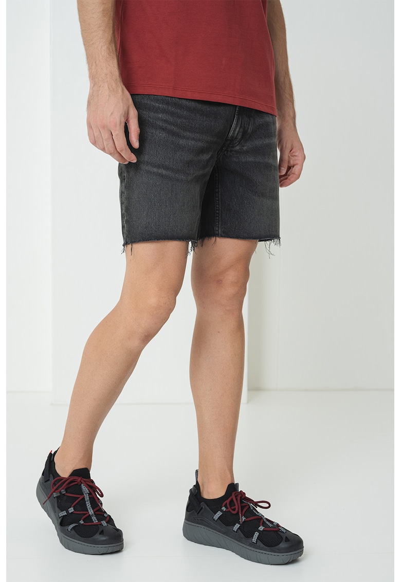 Caracteristici Culoare: gri antracit Material: denim Imprimeu: uni Croiala: regular fit Talie: medie Lungime: scurti Buzunare: 5 Detalii: terminatie franjurata Sistem inchidere: fermoar Compozitie Exterior: 100% bumbac Info model Modelul poarta un produs de marimea 32. Marimi model: 190 cm inaltime