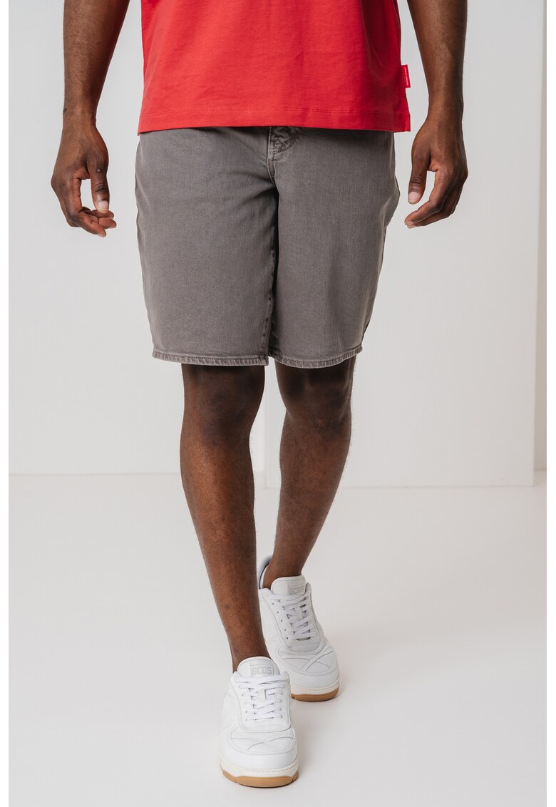 Caracteristici Culoare: gri Material: denim Imprimeu: uni Croiala: slim fit Talie: medie Lungime: scurti Buzunare: 5 buzunare Sistem inchidere: fermoar