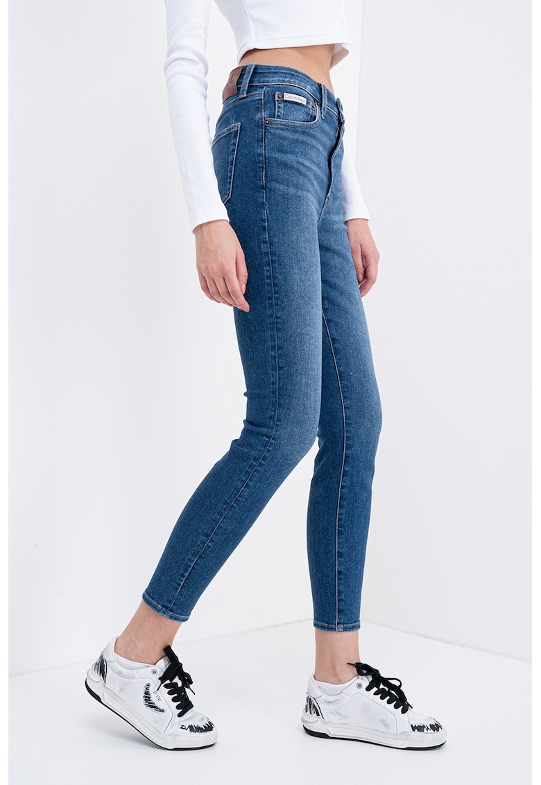 Caracteristici Culoare: albastru Croiala: skinny Material: denim Talie: medie Lungime: crop Buzunare: pe partea din fata si pe partea din spate Compozitie Exterior: 80% bumbac
