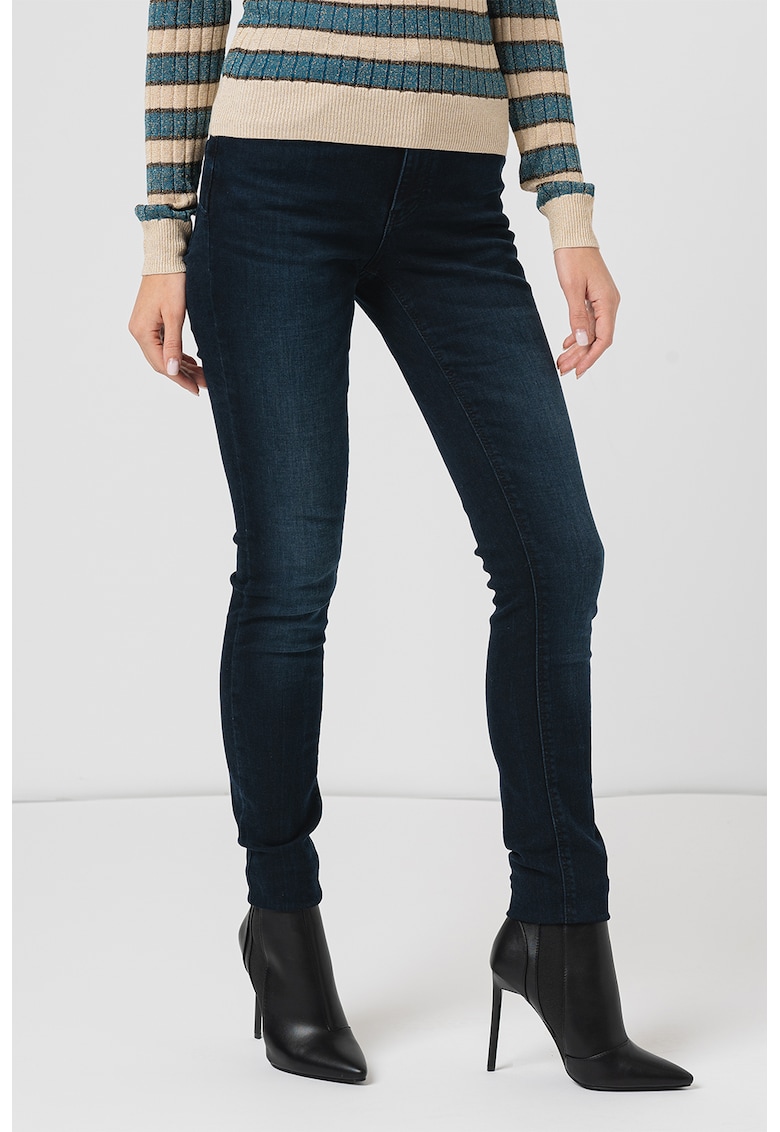 Caracteristici Culoare: bleumarin Imprimeu: uni Croiala: skinny Material: denim Talie: inalta Lungime: lungi Buzunare: 5 Sistem inchidere: fermoar Detalii: aspect decolorat Compozitie Exterior: 86% bumbac