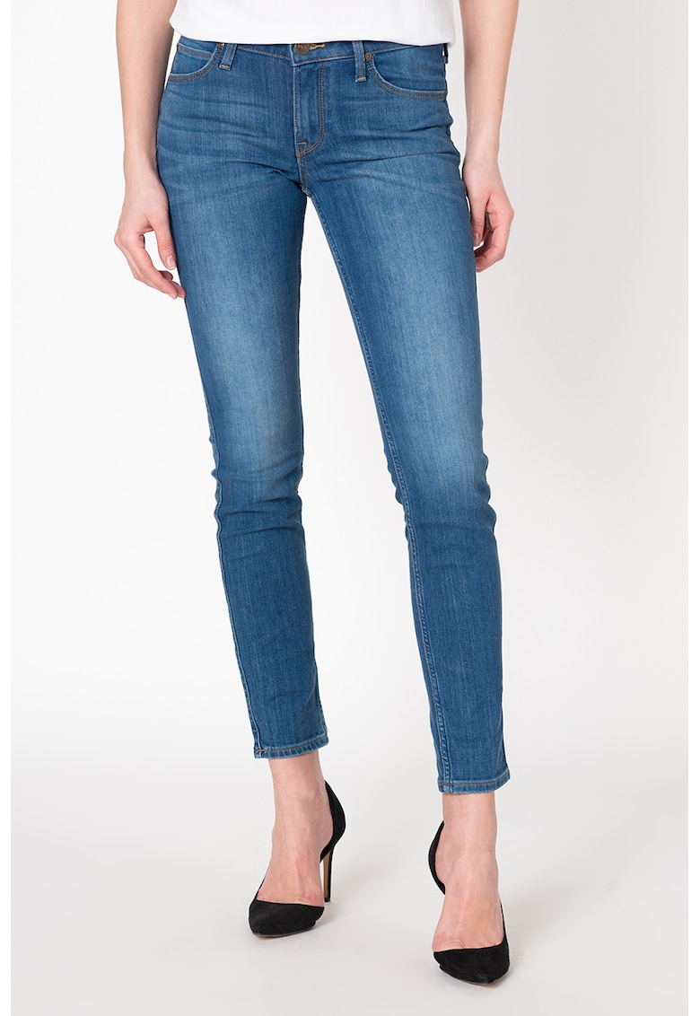 Caracteristici Culoare: albastru Imprimeu: uni Croiala: skinny Material: denim Talie: medie Lungime: lungi Buzunare: 5 Sistem inchidere: fermoar