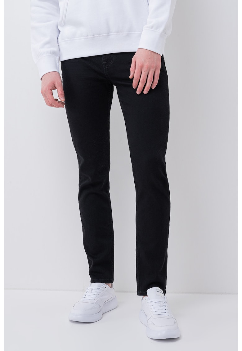 Caracteristici Culoare: negru Material: denim Imprimeu: uni Croiala: slim fit Talie: medie Lungime: lungi Buzunare: 5 buzunare Sistem inchidere: fermoar