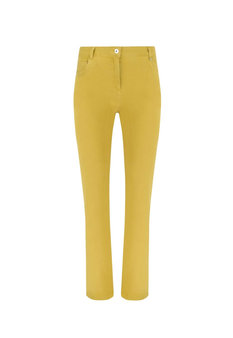 Caracteristici Culoare: galben mustar Imprimeu: uni Croiala: slim fit Material: bumbac Talie: inalta Lungime: lungi Buzunare: 5 Sistem inchidere: fermoar Compozitie Exterior: 79% bumbac