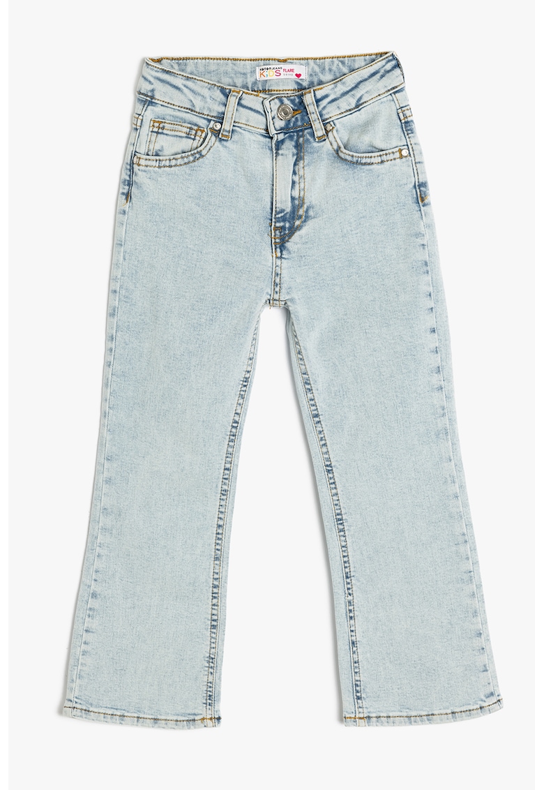Caracteristici Tip produs: blugi Culoare: albastru glaciar Material: bumbac Stil: casual Imprimeu: uni Croiala: evazat