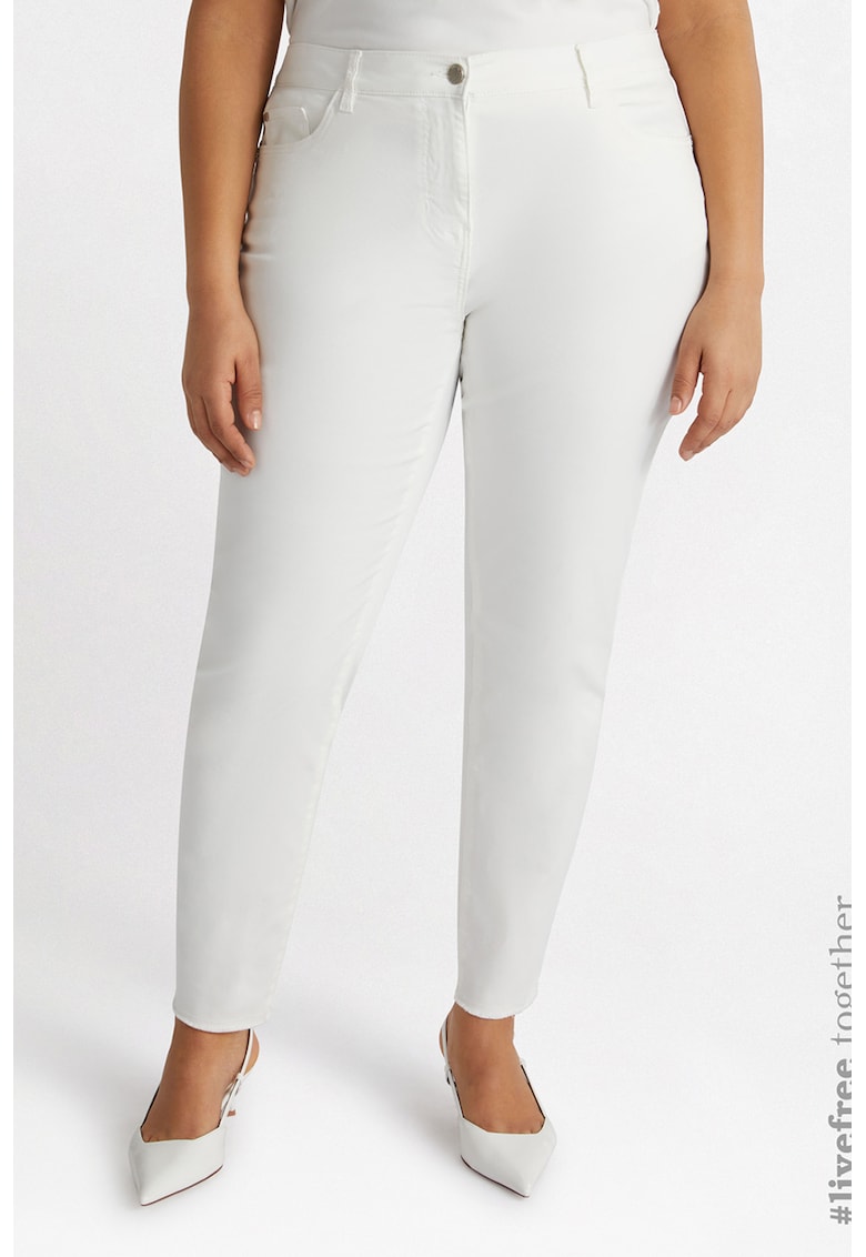 - bumbac Talie: medie Lungime: lungi Buzunare: 5 Sistem inchidere: fermoar Detalii: acest produs se adreseaza femeilor cu forme pline (plus size). Compozitie Exterior: 88% bumbac