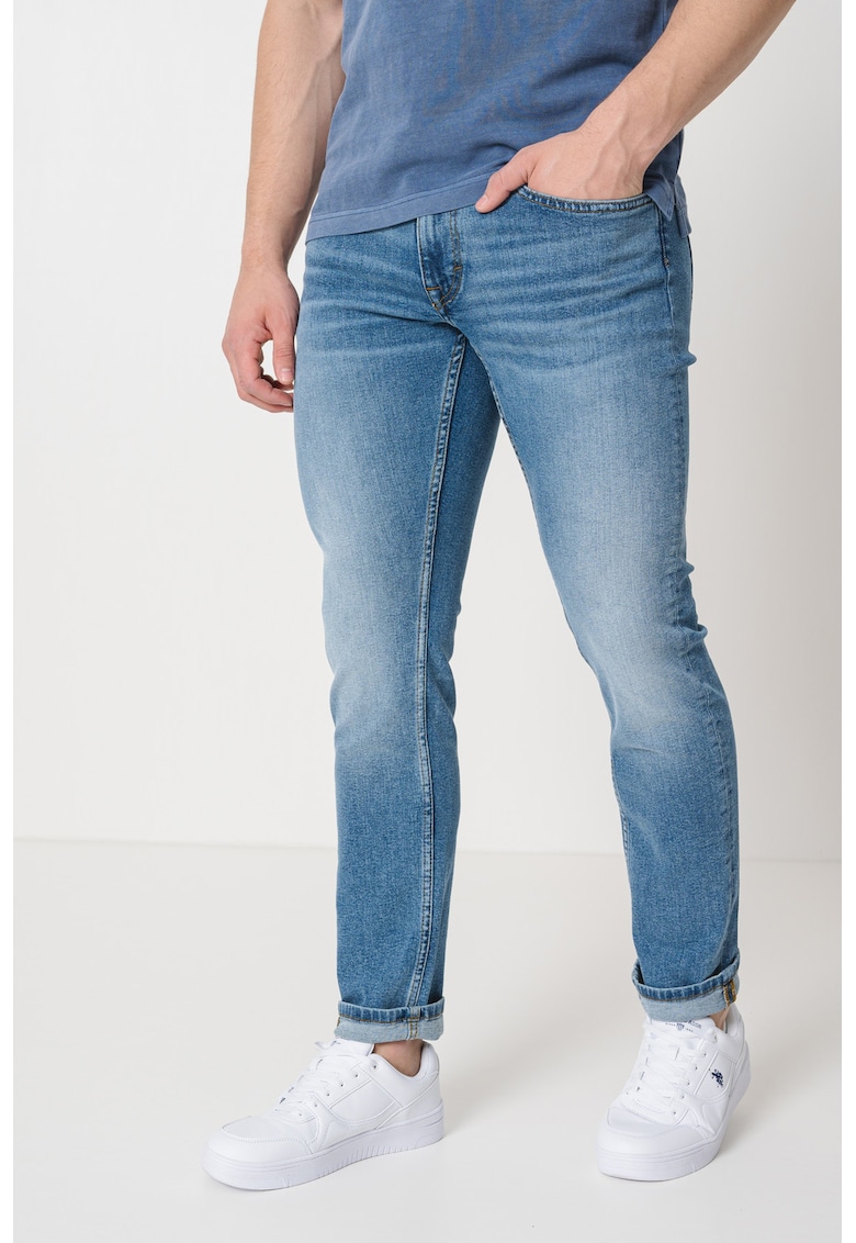 - denim Imprimeu: uni Croiala: slim fit Talie: medie Lungime: lungi Compozitie Exterior: 99% bumbac