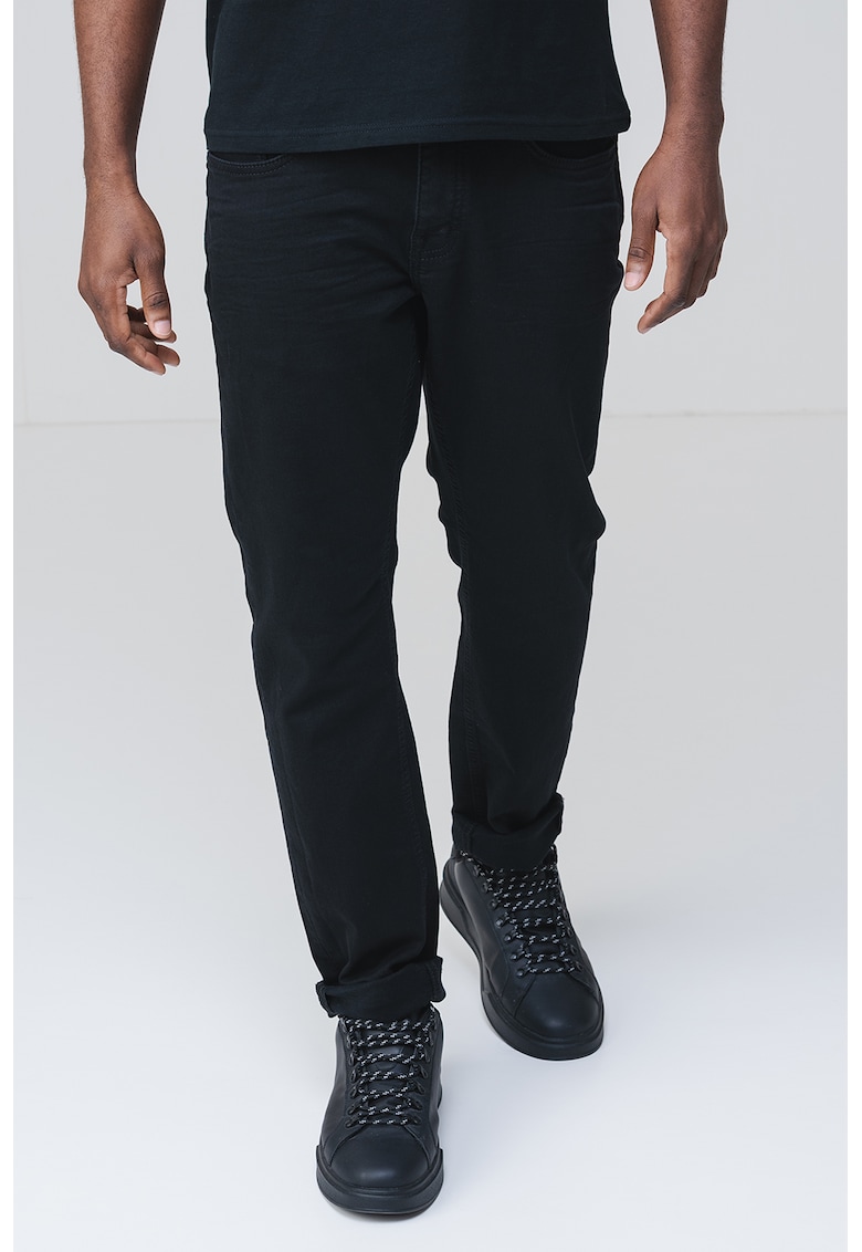 - denim Imprimeu: uni Croiala: slim fit Talie: medie Lungime: lungi Buzunare: 5 buzunare Sistem inchidere: fermoar Compozitie Exterior: 80% bumbac