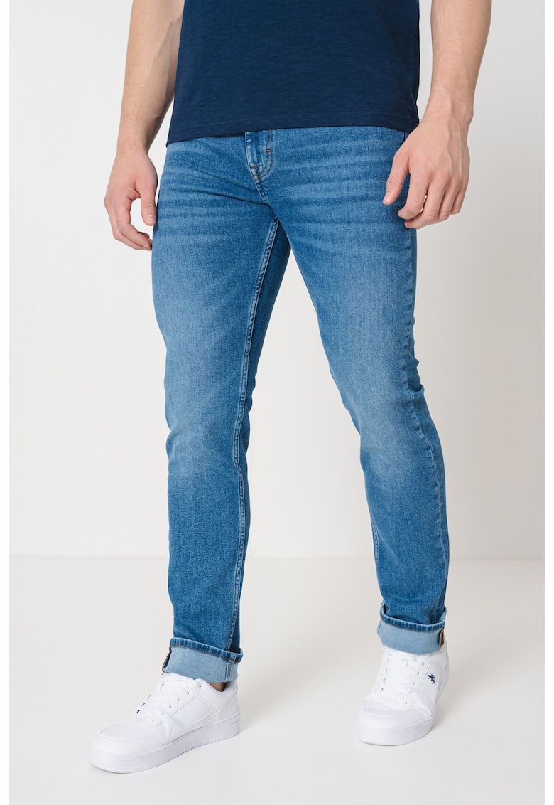 - denim Imprimeu: uni Croiala: slim fit Talie: medie Lungime: lungi Compozitie Exterior: 99% bumbac
