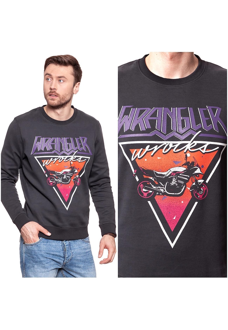 Caracteristici Tip produs: bluza de trening Culoare: negru Imprimeu: grafic Material: bumbac Croiala: regular fit Decolteu: decolteu rotund Sistem inchidere: fara inchidere Buzunare: fara buzunar Lungime maneca: maneca lunga Detalii: 80% bumbac