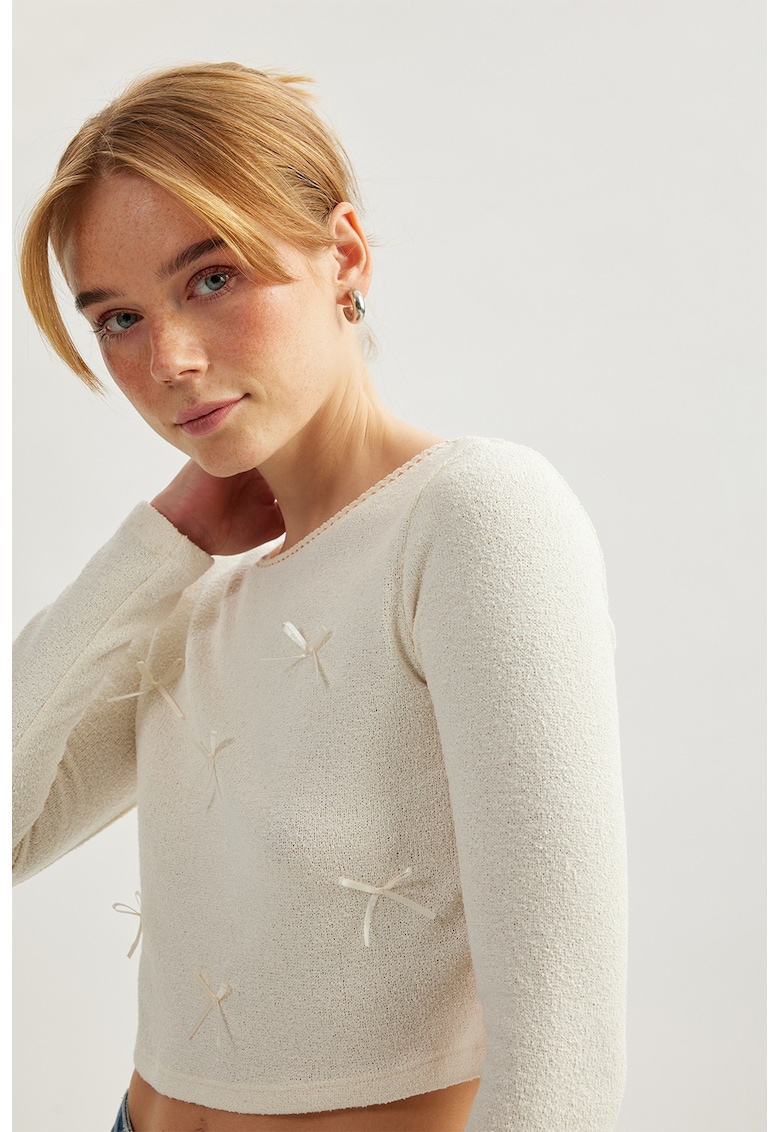 Caracteristici Culoare: crem Imprimeu: uni Stil: casual Croiala: crop Sistem inchidere: fara inchidere Material: poliester