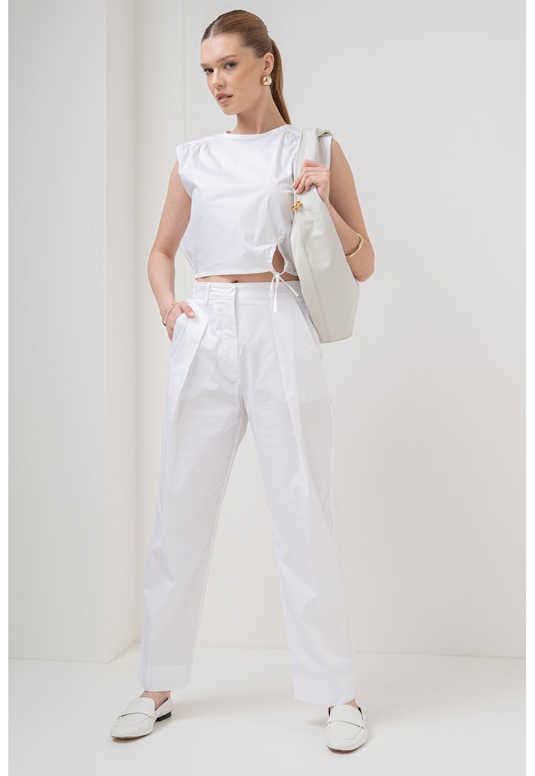 Caracteristici Culoare: alb optic Imprimeu: uni Stil: casual Croiala: crop Sistem inchidere: fara inchidere Material: bumbac