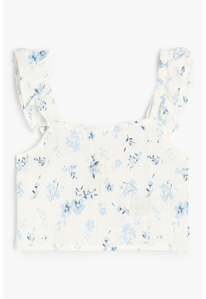 - albastru deschis Stil: casual Imprimeu: floral Material: bumbac Croiala: crop Decolteu: decolteu la baza gatului Lungime maneca: fara maneca Sistem inchidere: fara inchidere Colectie: primavara
