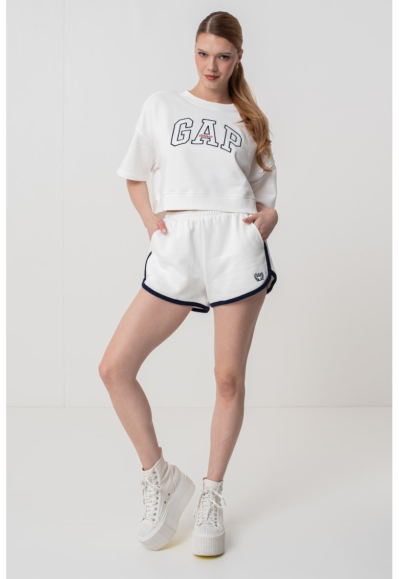Caracteristici Tip produs: bluza de trening Culoare: alb optic Imprimeu: logo Croiala: crop Sistem inchidere: fara inchidere Material: bumbac Maneci: maneci cazute Lungime maneca: maneca medie Compozitie Exterior: 77% bumbac