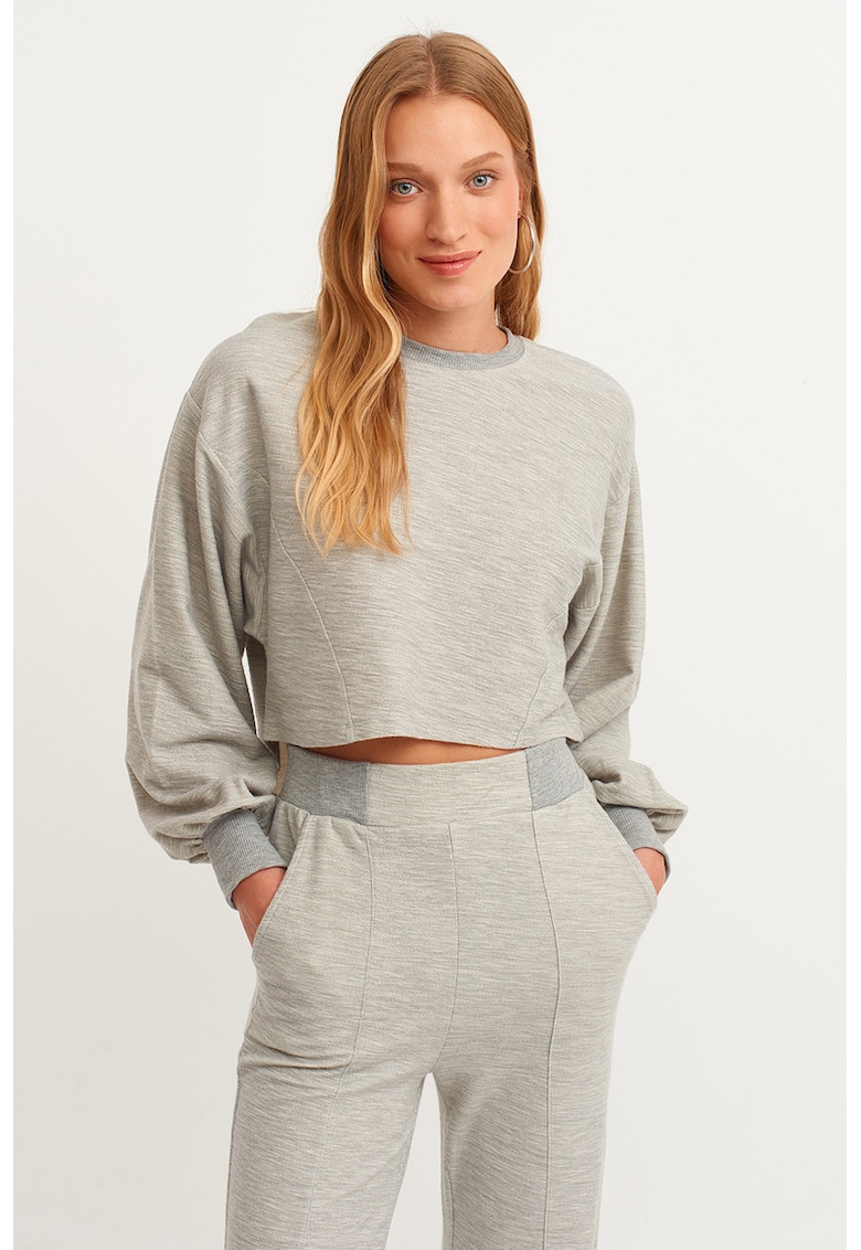 - bumbac Decolteu: rotund Maneci: bufante Lungime maneca: maneca lunga Detalii: design crop Compozitie Exterior: 70% bumbac