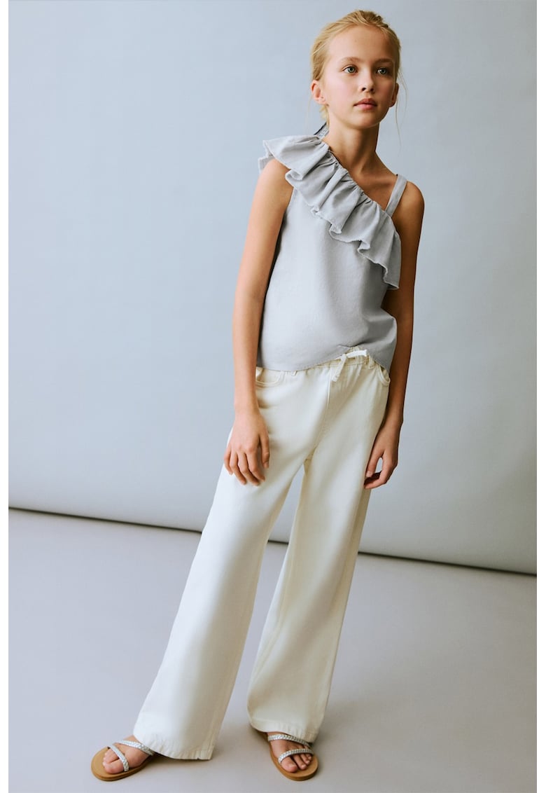 - in Croiala: asimetric Decolteu: asimetric Lungime maneca: fara maneca Detalii: insertii cu volane Sistem inchidere: fara inchidere Colectie: primavara