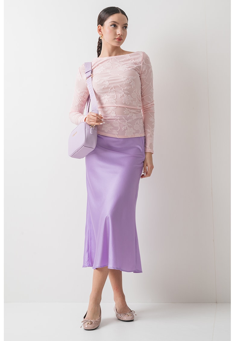 Caracteristici Culoare: roz deschis Imprimeu: floral Stil: casual Croiala: slim fit Sistem inchidere: fara inchidere Material: sintetic Decolteu: barcuta Lungime maneca: maneca lunga Compozitie Exterior: 95% poliester reciclat