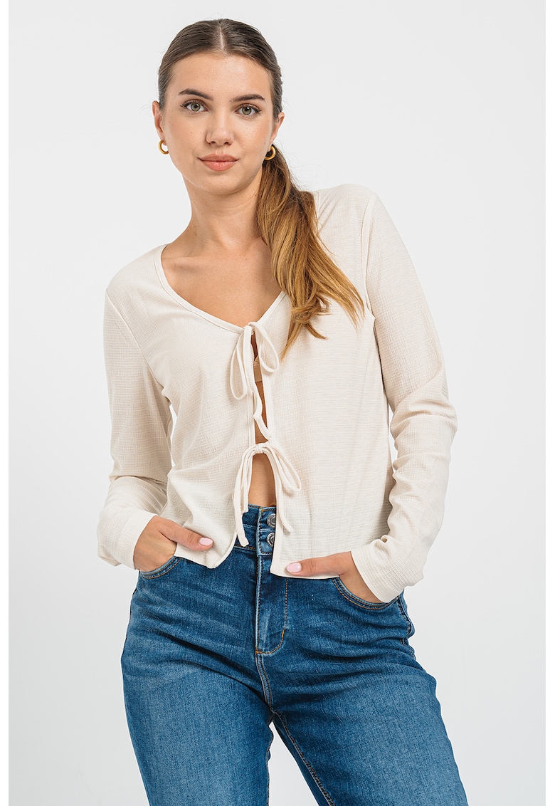 Caracteristici Culoare: alb murdar Imprimeu: uni Stil: casual Croiala: regular fit Sistem inchidere: snur Material: sintetic Decolteu: in v Lungime maneca: maneca lunga Compozitie Exterior: 99% poliester