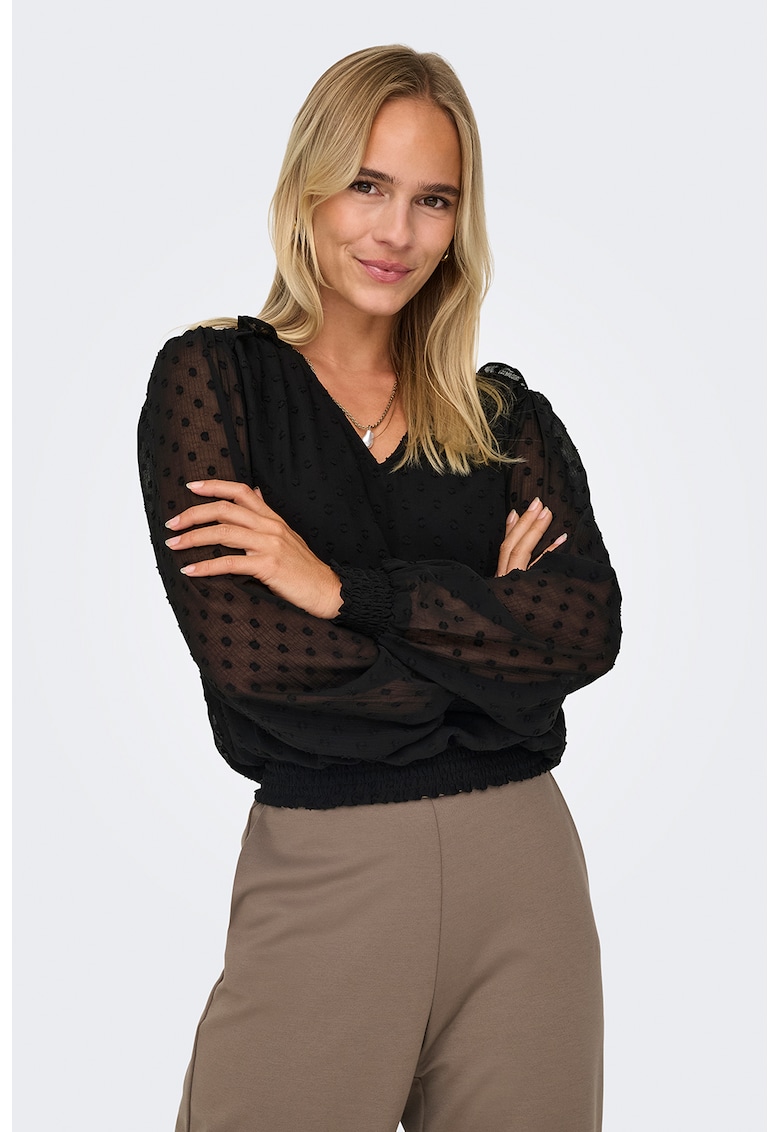 Caracteristici Culoare: negru Imprimeu: uni Stil: casual Croiala: regular fit Sistem inchidere: fara inchidere Material: sintetic Maneci: semitransparente Lungime maneca: maneca lunga Detalii: terminatie elastica