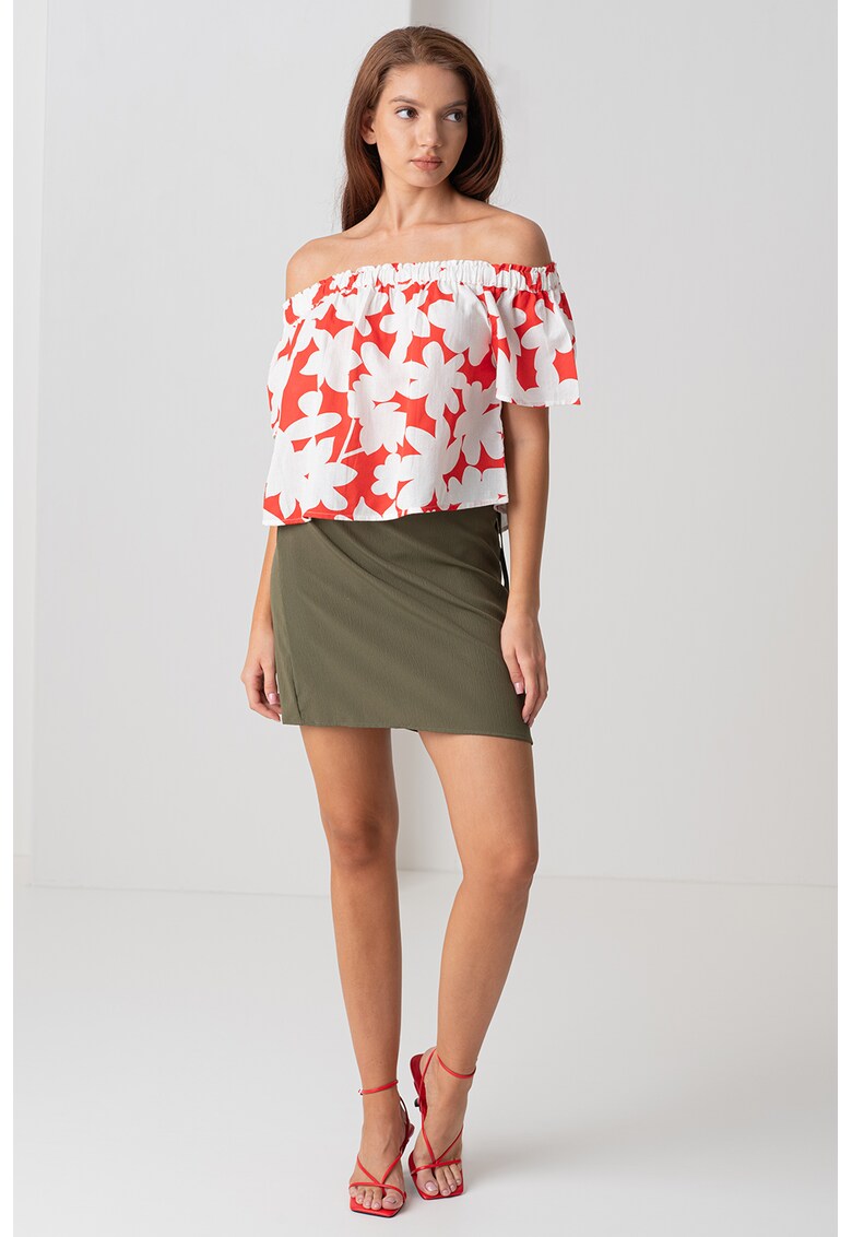 - alb Imprimeu: floral Stil: casual Croiala: decolteu pe umeri Sistem inchidere: fara inchidere Material: bumbac organic Decolteu: drept Lungime maneca: maneca medie Compozitie Exterior: 100% bumbac organic Info model Modelul poarta un produs de marimea S. Marimi model: 175 cm inaltime
