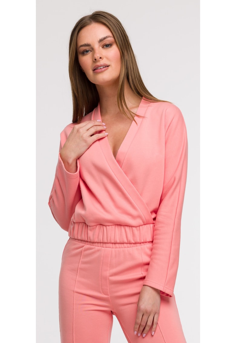 Caracteristici Tip produs: bluza de trening Culoare: roz Imprimeu: uni Croiala: crop Sistem inchidere: fara inchidere Material: poliester