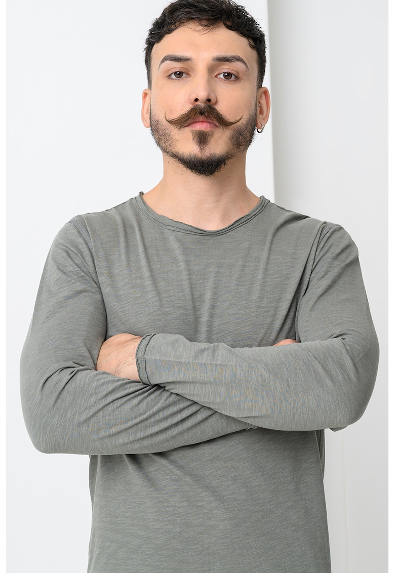 Caracteristici Culoare: verde prafuit Imprimeu: uni Material: bumbac Stil: casual Croiala: regular fit Sistem inchidere: fara inchidere Decolteu: rotund Lungime maneca: maneca lunga Compozitie Exterior: 100% bumbac Info model Modelul poarta un produs de marimea M. Marimi model: 187 cm inaltime