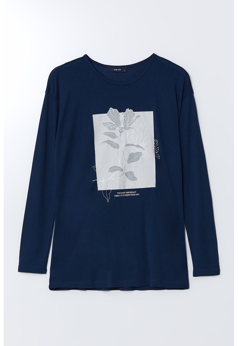- grafic Stil: casual Croiala: lejer Sistem inchidere: fara inchidere Material: viscoza Decolteu: rotund Maneci: cazute Lungime maneca: maneca lunga Compozitie Exterior: 100% viscoza