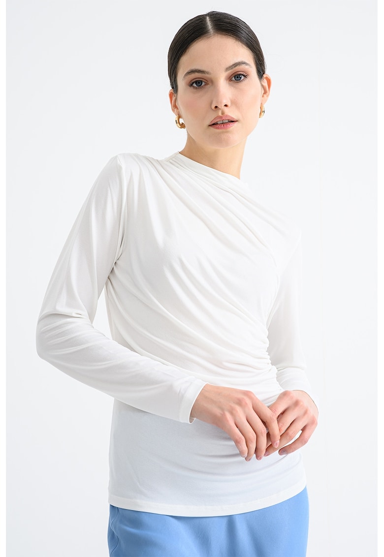 Caracteristici Culoare: alb optic Imprimeu: uni Stil: elegant Croiala: slim fit Material: poliester Decolteu: la baza gatului Lungime maneca: maneca lunga Compozitie Exterior: 95% poliester reciclat