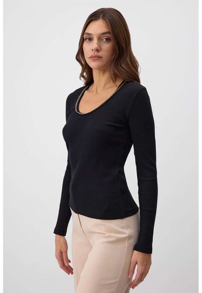 - elastan Decolteu: adanc Lungime maneca: maneca lunga Detalii: aplicatii cu lanturi decorative Compozitie Exterior: 47% viscoza