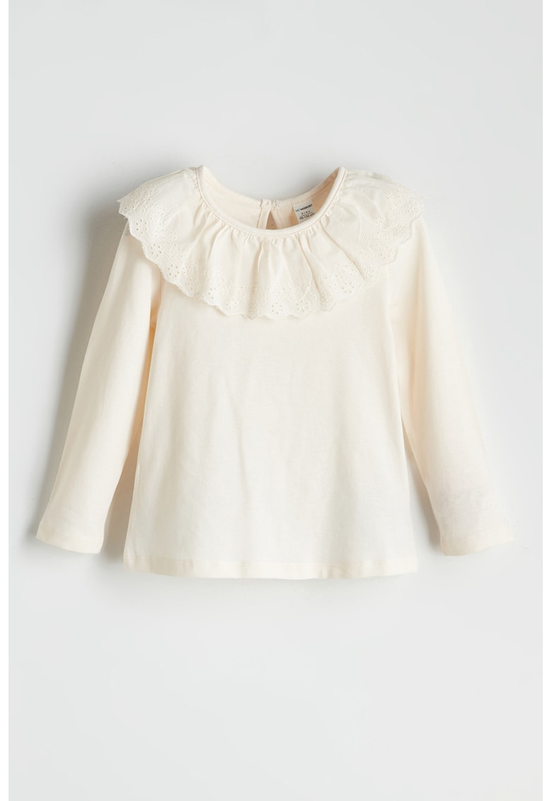 Caracteristici Culoare: bej Stil: casual Imprimeu: uni Material: bumbac Croiala: regular fit Guler: cu volan Decolteu: rotund Lungime maneca: maneca lunga Sistem inchidere: fara inchidere Colectie: primavara