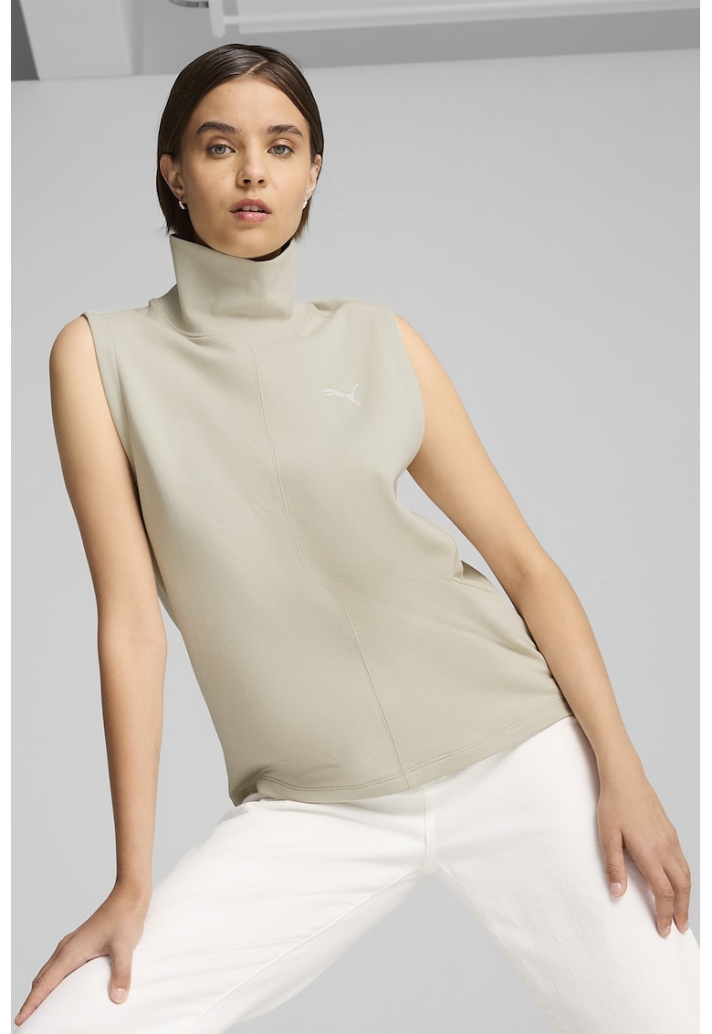 Caracteristici Culoare: bej deschis Imprimeu: uni Stil: casual Croiala: regular fit Sistem inchidere: fara inchidere Material: bumbac Decolteu: guler inalt