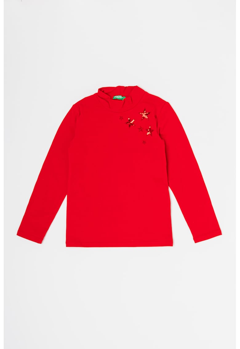 Caracteristici Culoare: rosu Stil: casual Imprimeu: stelute Material: bumbac Croiala: regular fit Guler: inalt Lungime maneca: maneca lunga Detalii: paiete Sistem inchidere: fara inchidere Colectie: primavara