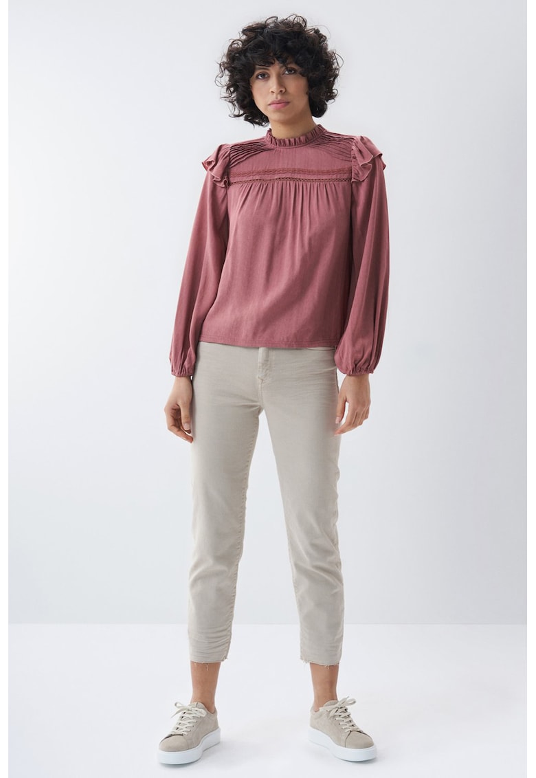 Caracteristici Culoare: roz prafuit Imprimeu: uni Stil: casual Croiala: regular fit Sistem inchidere: fara inchidere Material: poliester
