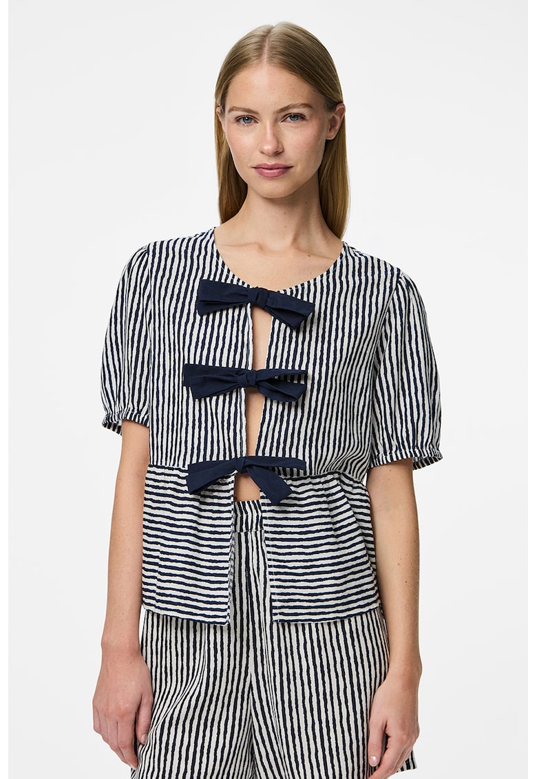 - albastru ultramarin Imprimeu: dungi Stil: casual Croiala: regular fit Sistem inchidere: snur Material: viscoza