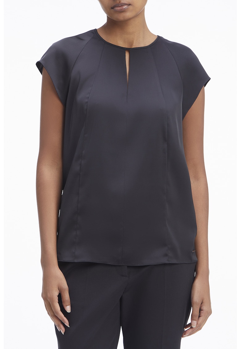 Caracteristici Culoare: negru Imprimeu: uni Stil: casual Croiala: regular fit Sistem inchidere: fara inchidere Material: sintetic Decolteu: la baza gatului Maneci: raglan Lungime maneca: maneca scurta Detalii: decupaje