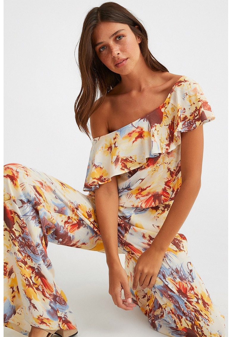 - alb murdar Imprimeu: abstract Stil: casual Croiala: lejer Sistem inchidere: fara inchidere Material: viscoza Decolteu: decolteu pe un umar Lungime maneca: maneca scurta Compozitie Exterior: 100% viscoza