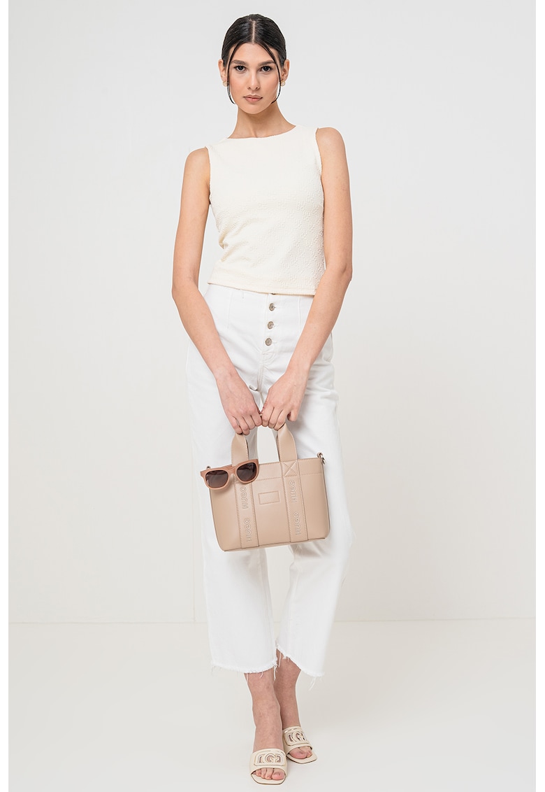 Caracteristici Culoare: alb murdar Imprimeu: logo Stil: casual Croiala: slim fit Material: bumbac Decolteu: la baza gatului Lungime maneca: fara maneca Compozitie Exterior: 100% bumbac Info model Modelul poarta un produs de marimea S. Marimi model: 181 cm inaltime