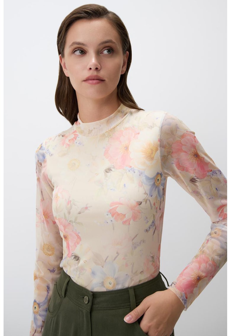 - roz pastel Imprimeu: floral Stil: casual Croiala: regular fit Sistem inchidere: fara inchidere Material: sintetic Guler: scurt Lungime maneca: maneca lunga Detalii: va sugeram sa cumparati cu o marime mai mare decat alegeti de obicei. Compozitie Exterior: 95% poliester