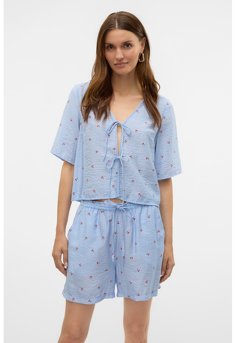 - albastru lavanda Imprimeu: fructe Stil: casual Croiala: regular fit Sistem inchidere: snur Material: viscoza Decolteu: in v Lungime maneca: maneca scurta Compozitie Exterior: 84% viscoza liva reviva by birla cellulose™