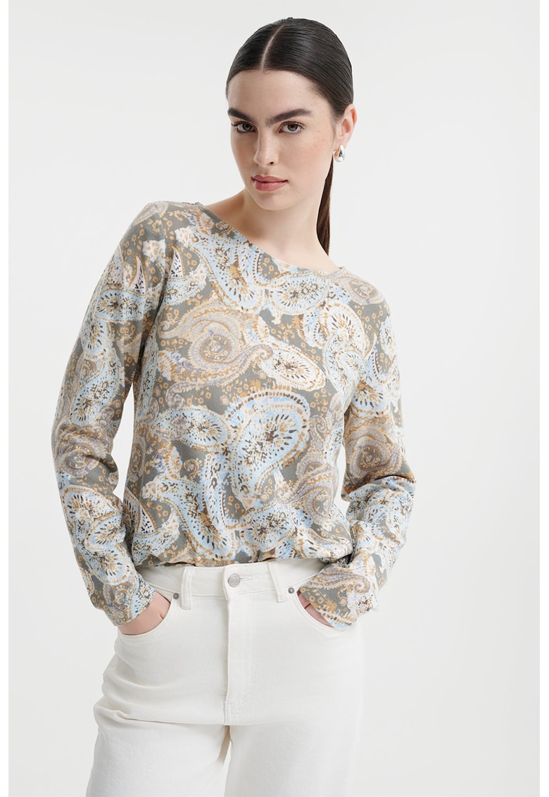 - grej Imprimeu: paisley Stil: casual Croiala: regular fit Sistem inchidere: fara inchidere Material: sintetic Decolteu: rotund Lungime maneca: maneca lunga Compozitie Exterior: 50% poliester
