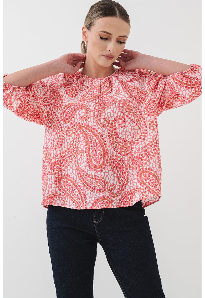 - roz Imprimeu: grafic Stil: casual Croiala: regular fit Sistem inchidere: fara inchidere Material: sintetic Lungime maneca: maneca trei sferturi Compozitie Exterior: 81% viscoza
