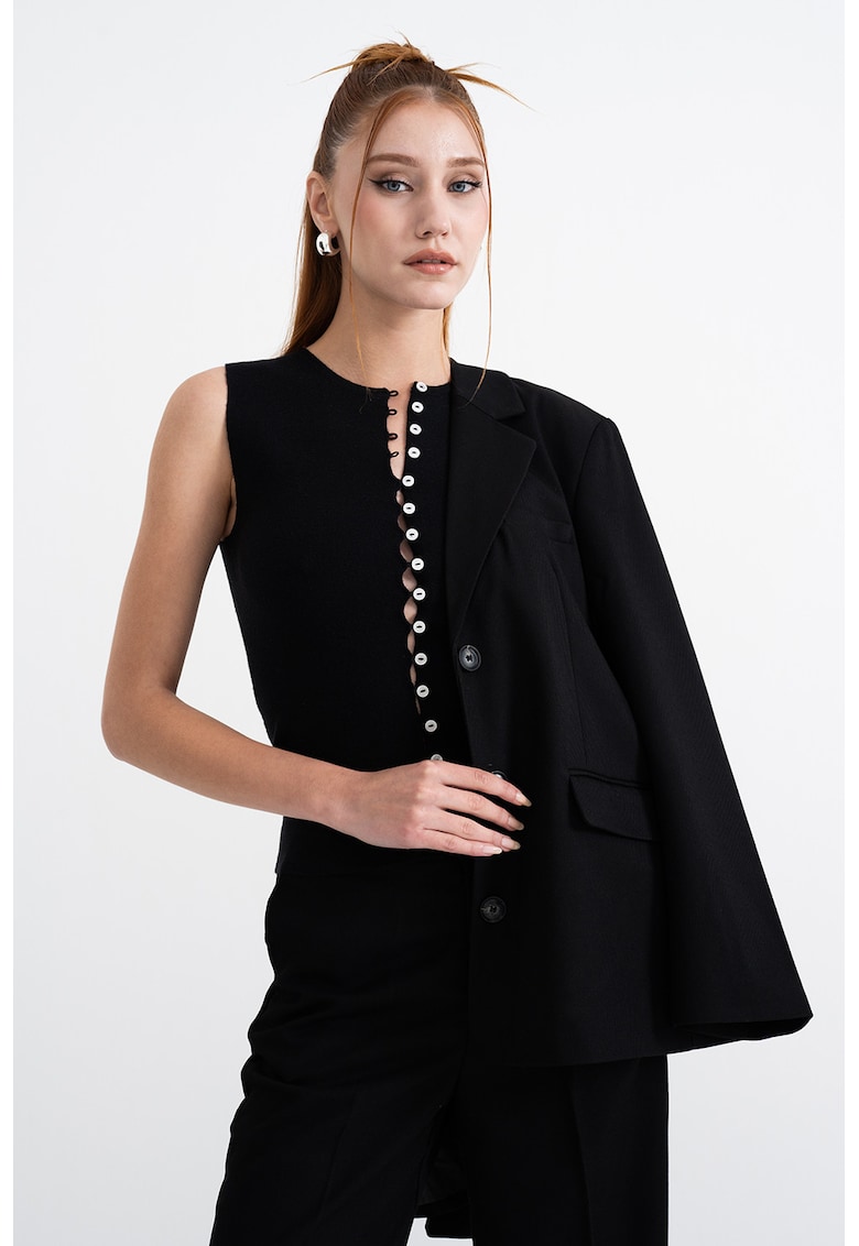 Caracteristici Culoare: negru Imprimeu: uni Stil: casual Croiala: regular fit Material: viscoza Lungime maneca: fara maneca Compozitie Exterior: 50% viscoza eco®