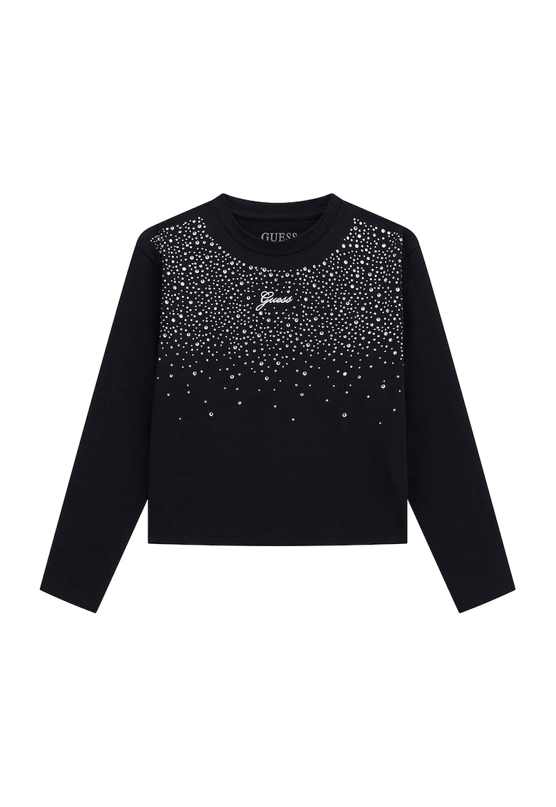 - logo Material: bumbac Croiala: regular fit Decolteu: la baza gatului Lungime maneca: maneca lunga Detalii: aplicatii din strasuri Sistem inchidere: fara inchidere Compozitie Exterior: 95% bumbac