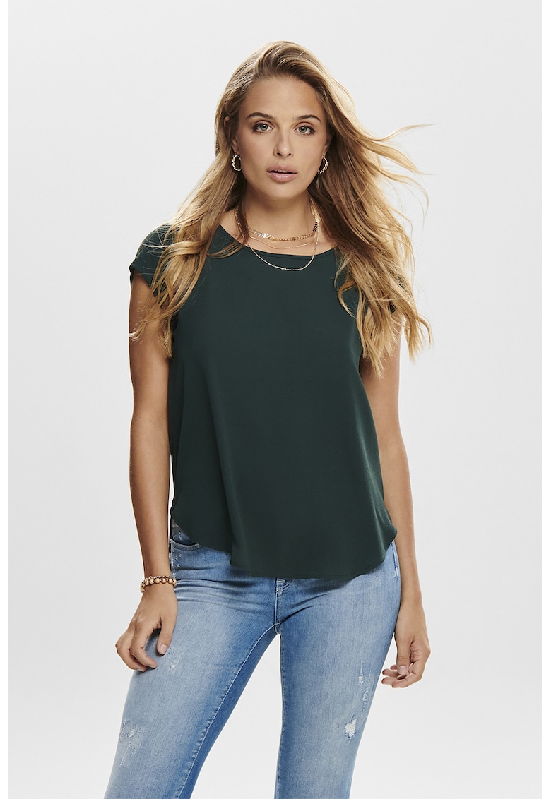 - verde inchis Imprimeu: uni Stil: casual Croiala: regular fit Sistem inchidere: fermoar Material: sintetic Decolteu: rotund Maneci: tip aripioara Lungime maneca: maneca scurta Detalii: terminatie asimetrica Compozitie Exterior: 97% poliester reciclat