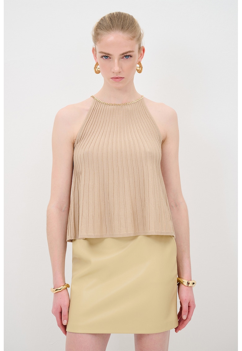 Caracteristici Culoare: maro nisip Imprimeu: uni Stil: elegant Croiala: lejer Material: viscoza Lungime maneca: fara maneca Detalii: marimea este mai mica decat standardul