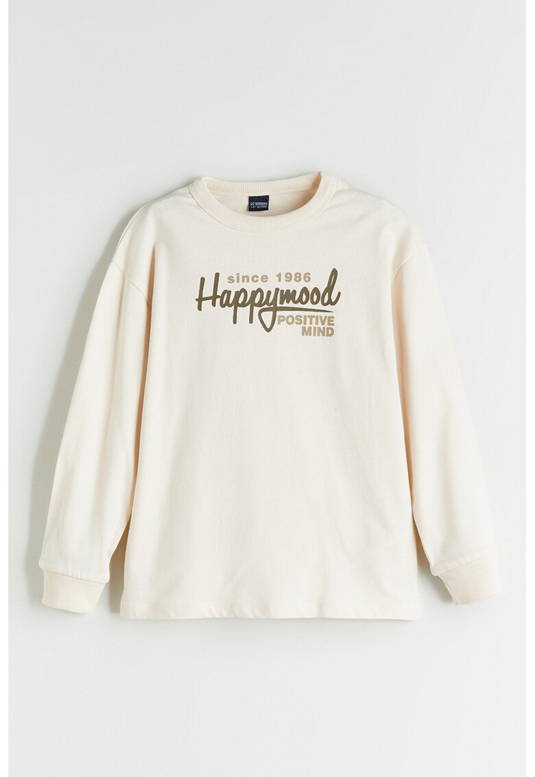 - crem Stil: casual Imprimeu: text Material: bumbac Croiala: regular fit Decolteu: decolteu la baza gatului Lungime maneca: maneca lunga Maneci: cu mansete elastice Sistem inchidere: fara inchidere Colectie: toamna