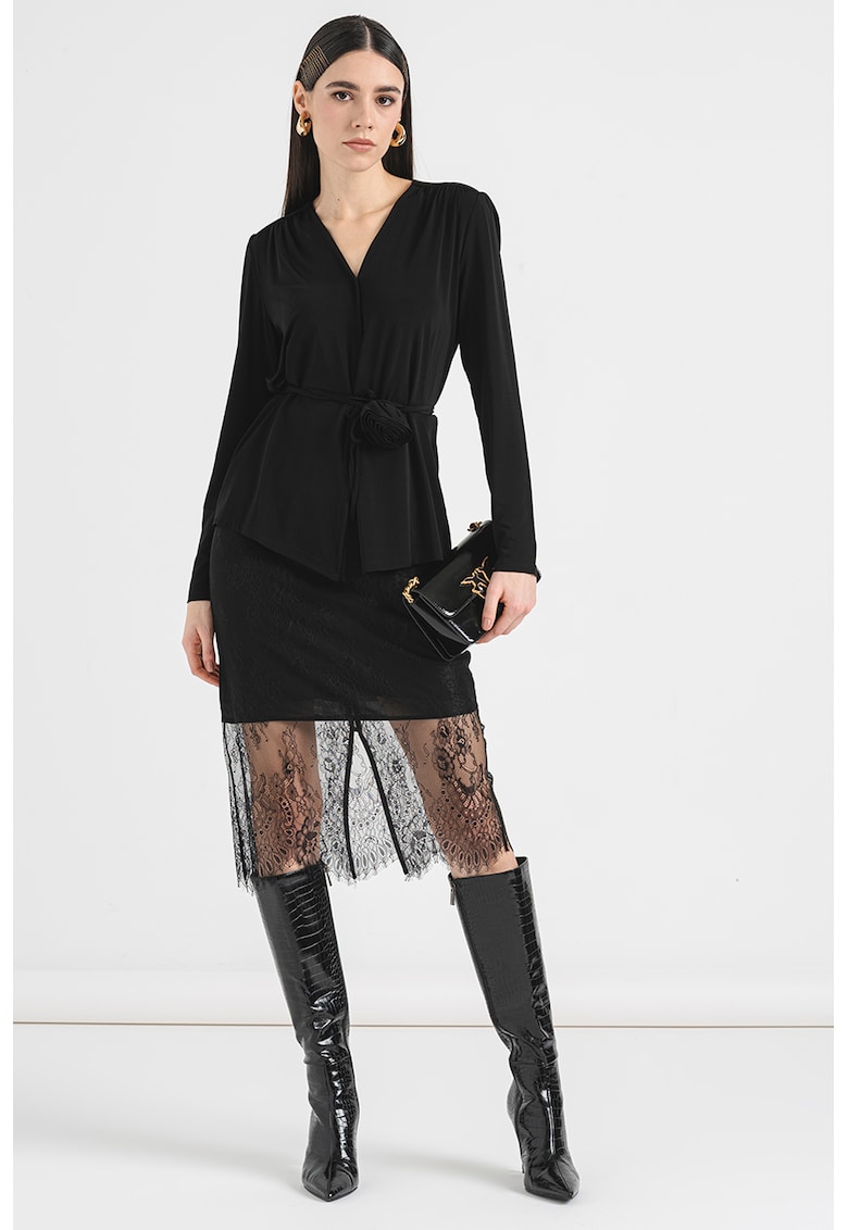 Caracteristici Culoare: negru Imprimeu: uni Stil: casual Croiala: regular fit Material: viscoza Decolteu: in v Lungime maneca: maneca lunga Compozitie Exterior: 88% viscoza