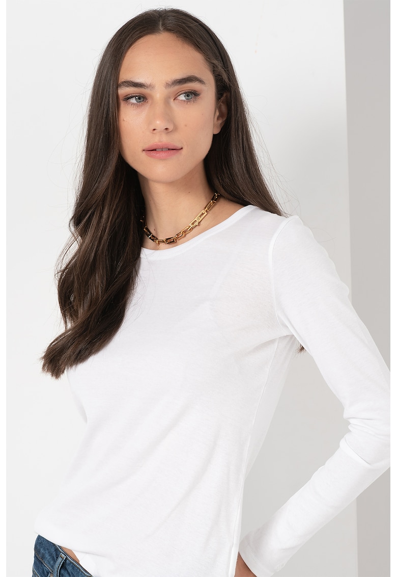 Caracteristici Culoare: alb optic Imprimeu: uni Stil: casual Croiala: slim fit Sistem inchidere: fara inchidere Material: bumbac Decolteu: rotund Lungime maneca: maneca lunga Compozitie Exterior: 100% bumbac Info model Modelul poarta un produs de marimea S. Marimi model: 178 cm inaltime