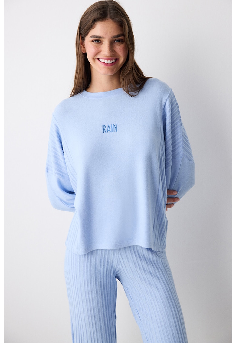 Caracteristici Tip produs: bluza de pijama Culoare: albastru pastel Material: sintetic