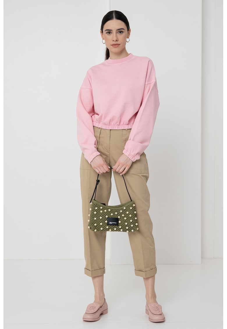 Caracteristici Tip produs: bluza de trening Culoare: roz pastel Imprimeu: uni Croiala: crop Sistem inchidere: fara inchidere Material: bumbac Lungime maneca: maneca lunga Compozitie Exterior: 100% bumbac Info model Modelul poarta un produs de marimea S. Marimi model: 177 cm inaltime